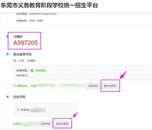 答 一个学生一个注册码,注册码将于2025年7月3日晚上8时左右发布到招生平台(如图),届时家长可以登录平台查看和向计划入读的录取学校提交注册码。