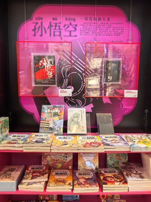 快闪店把传统文化和现代潮流完美结合,让消费者在享受购物乐趣的同时,也能深入了解中国神话的魅力。在这里,消费者可以找到自己喜欢的神话图书、手办玩具,从《西游记》《哪吒》各类图书到《星光版英雄无限》积木人系列,从经典故事到魔改手办,每一个产品都像是打开了一扇通往奇幻世界的大门,当传统文化被玩出赛博朋克风格,这波快闪或许证明“年轻人不是不爱神话,而是需要神仙们亲自下场整活”。