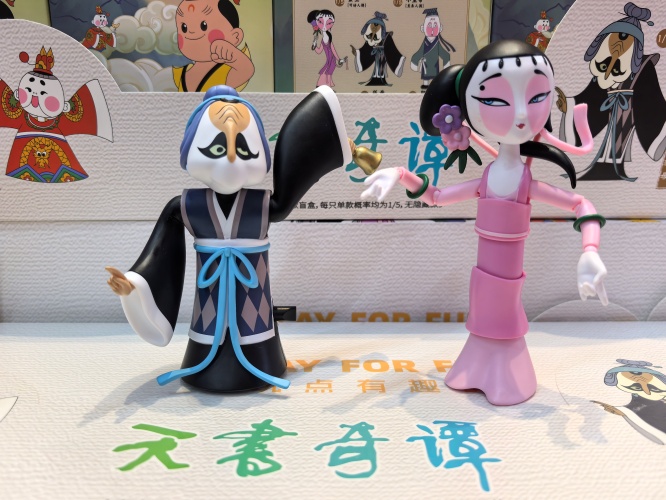 葫芦娃、小邋遢、黑猫警长、舒克贝塔、三个和尚、阿凡提……除了各类传统神话人物纷纷变身潮玩,快闪店还专设了上海美术电影制片厂的动画主题文创专区,各位主角将带领不同年龄段的消费者“爷青回”。其中一个汇聚了上海美术电影制片厂众多动画主角的拼图产品颇受大家的欢迎,读者调侃,“原来非遗的终极形态是让我玩到停不下来,我越来越能理解孩子要买手办的乐趣了。”