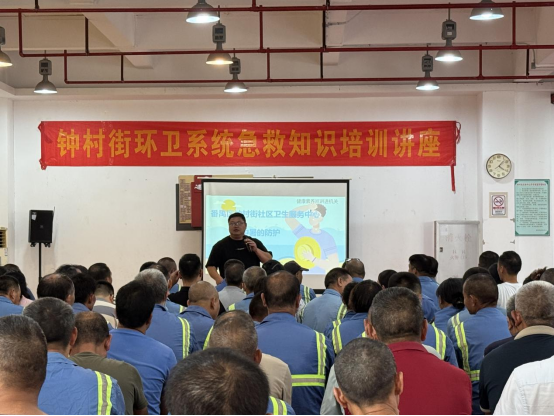 为切实保障钟村街环卫工人的人身安全和健康,做好高温天气作业劳动保护工作,近日,钟村街城市管理和林业园林绿化办公室为环卫工人开展一场急救知识培训讲座。钟村街城市管理和林业园林绿化办公室、环卫公司、环卫队等相关负责人及一线环卫工人参加。