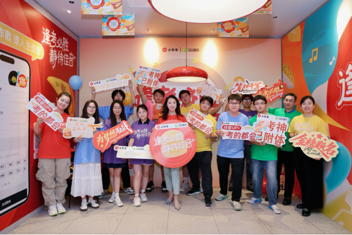 据悉今年恰逢逢考必胜十周年,必胜客携手QQ音乐,于北京精心打造了“逢考必胜 静待佳音”主题店,在充满祝福和音符的空间里,饱含对学子们的美好祝愿。
